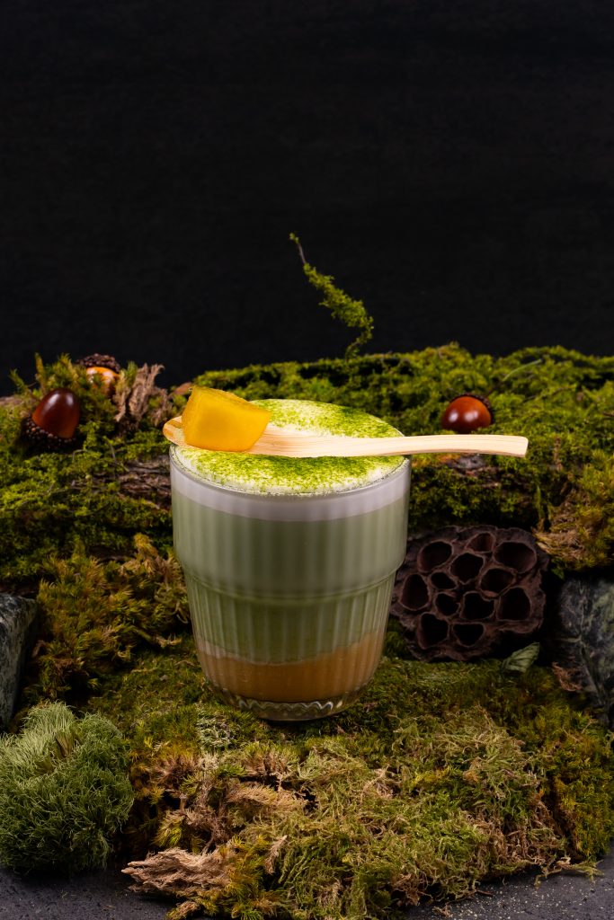 Matcha no tsuki, piure gutuie, aloe miere, lapte de cocos