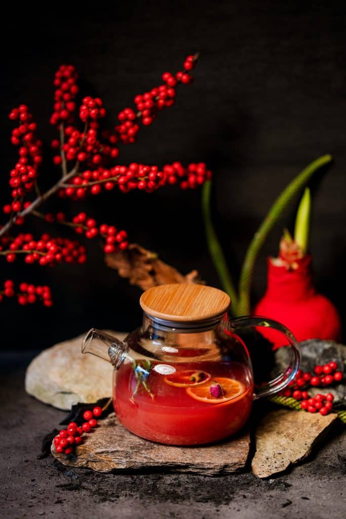 Infuzie de lemongrass și trandafir, suc de pere, sirop de trandafir cu vanilie