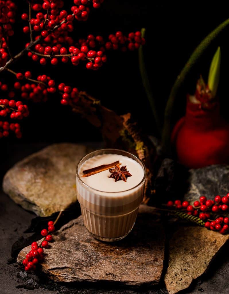 Lapte lactoza free, miere, ceai assam, cuisoare, cardamon, scortisoara, mix din piper și anason stelat