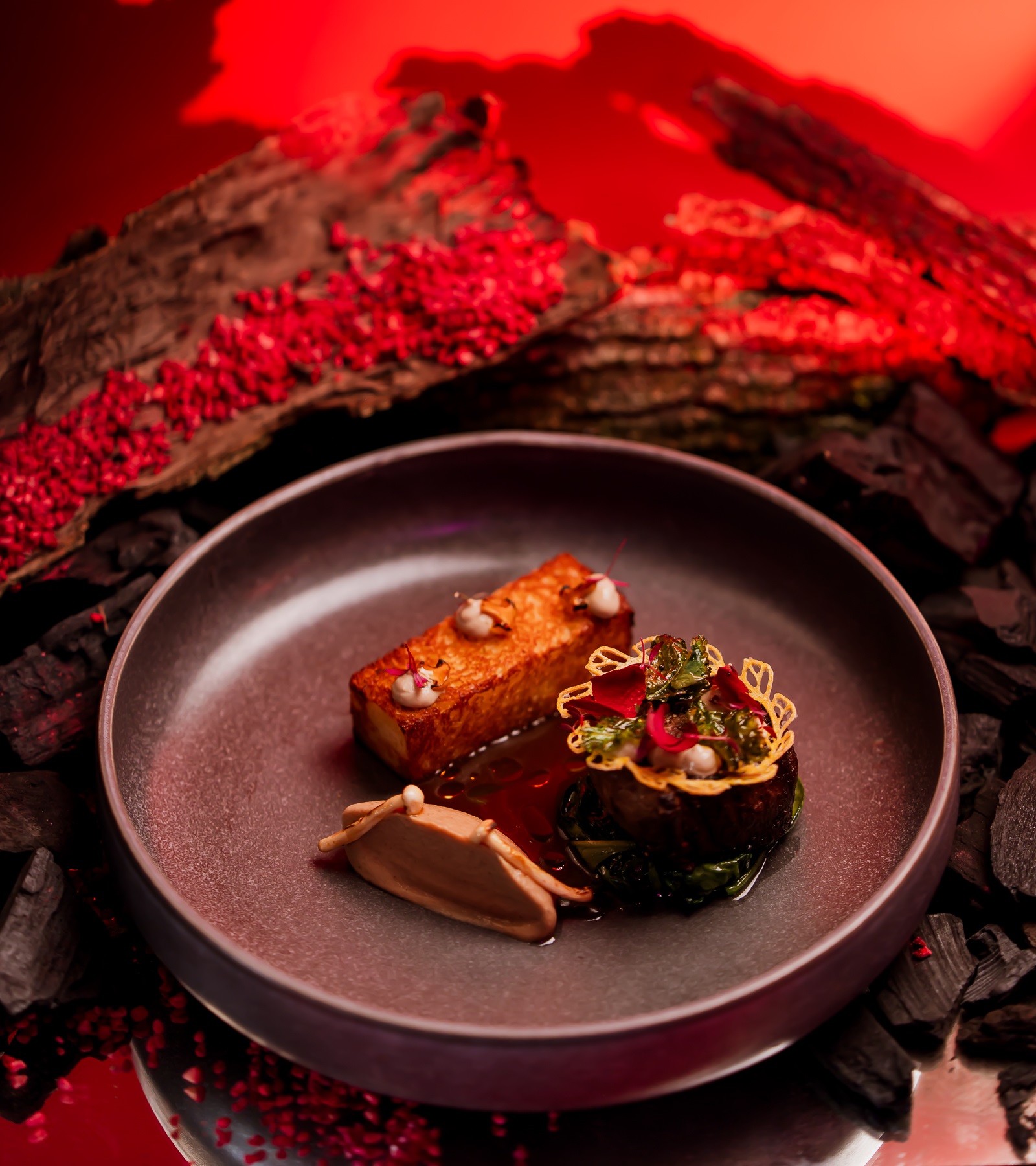 Tequila, Campari cu cordial de dragon fruit și lychee cu un nouraș de fum