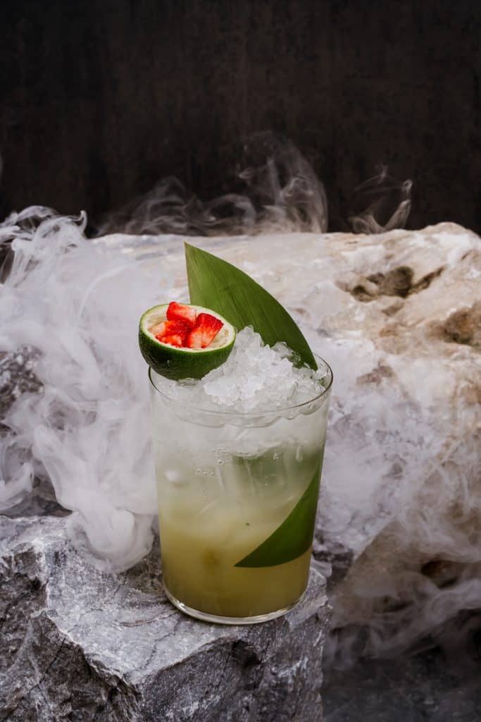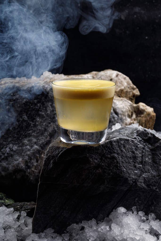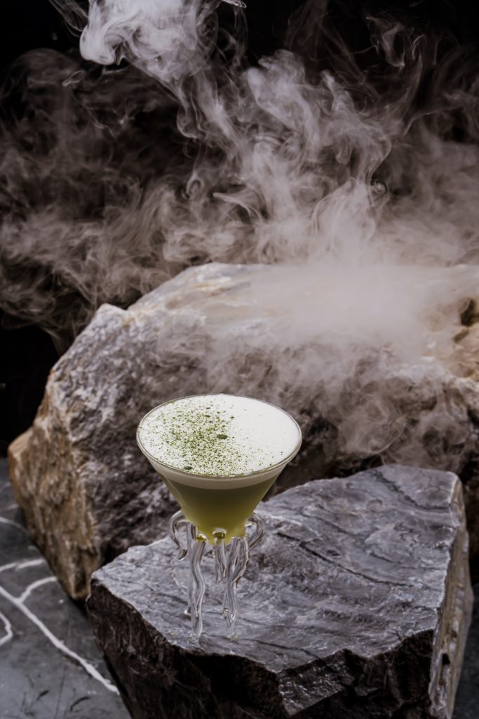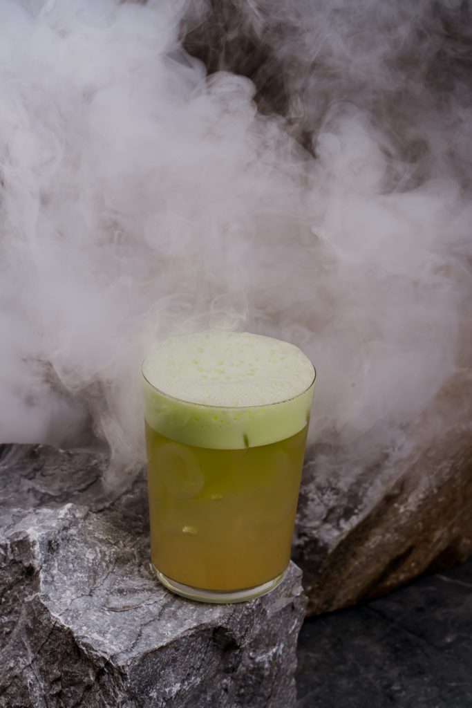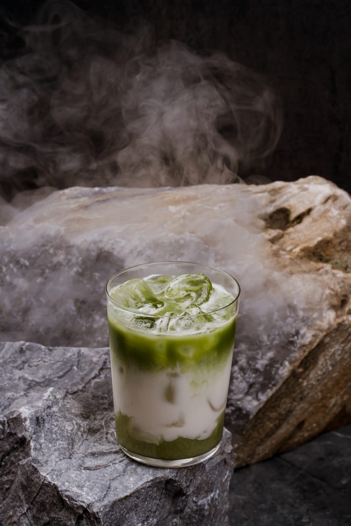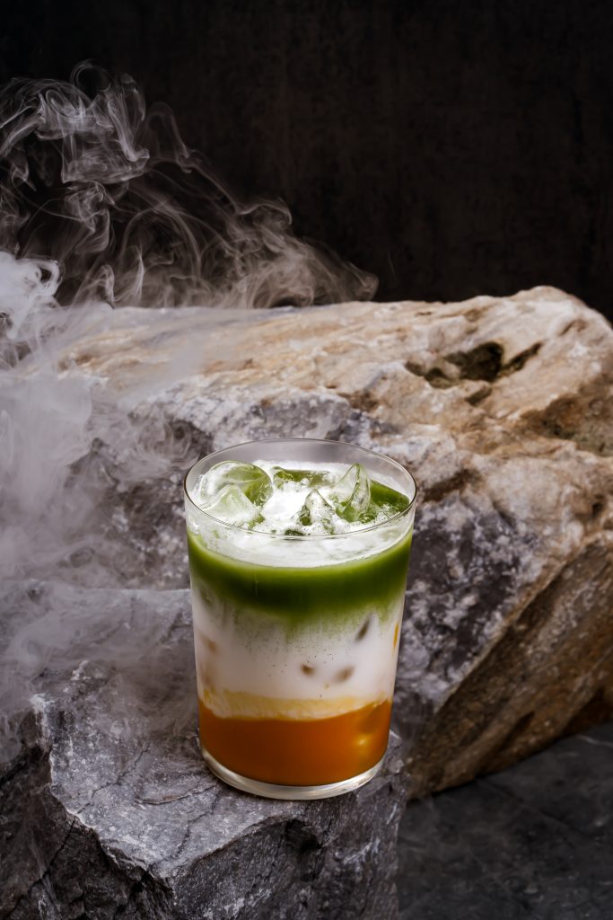 Микс ромов, банан, содовая и церемониальная матча