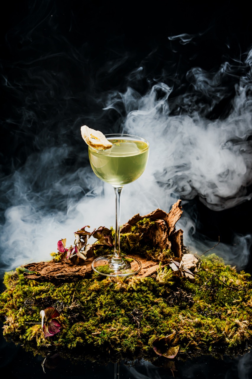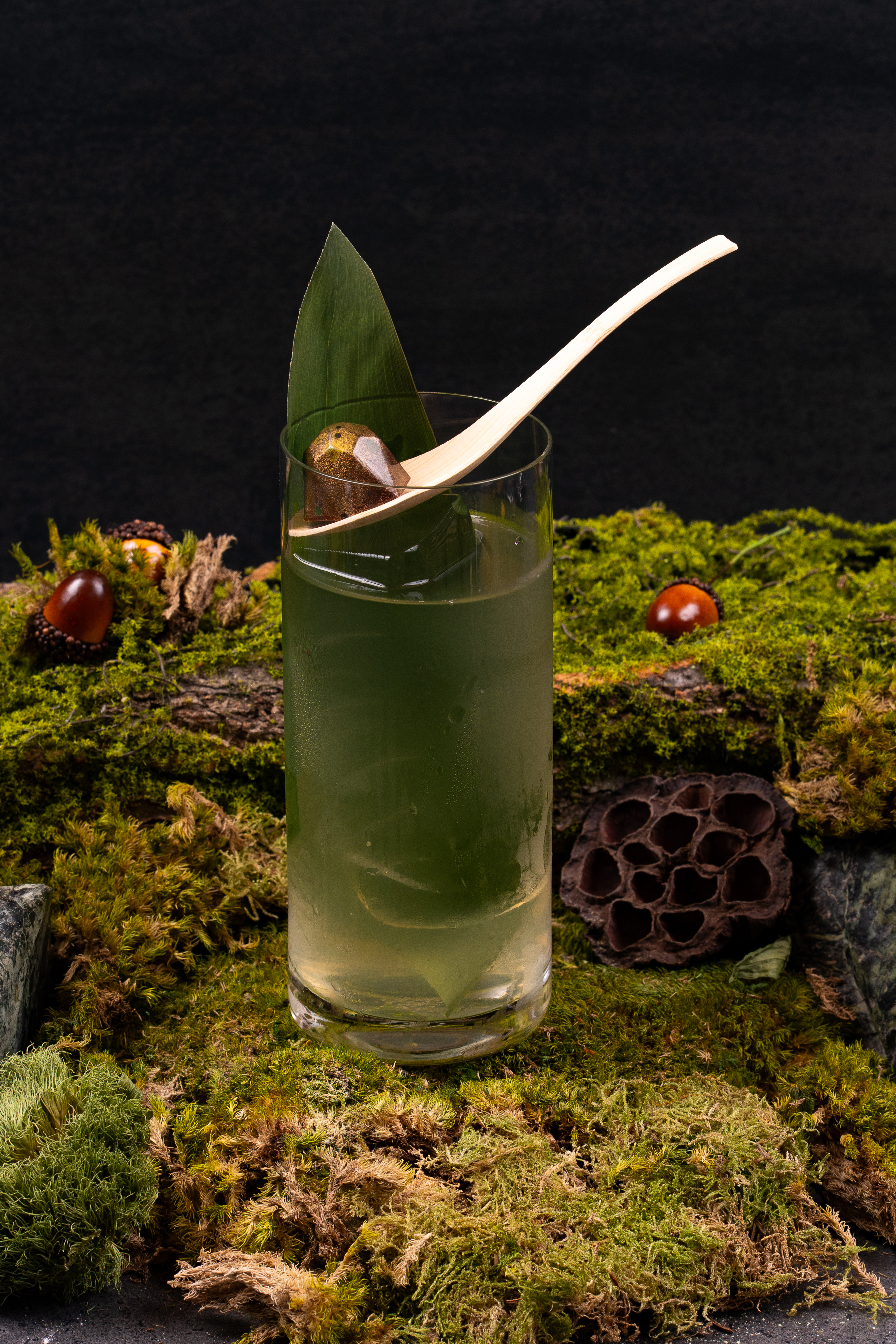 Фисташковый джин, пандан, винный кордиал, сок айвы