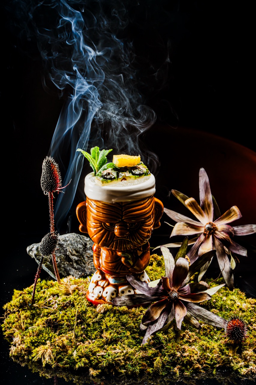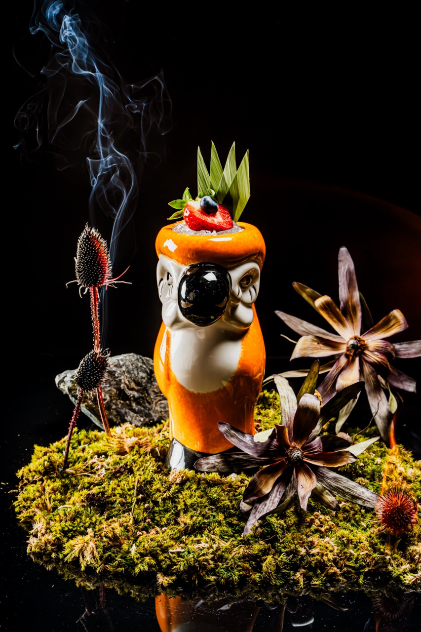 Ананасовый ром, кокосовый ром, ликёр фалернум, кордиал запечённой тыквы