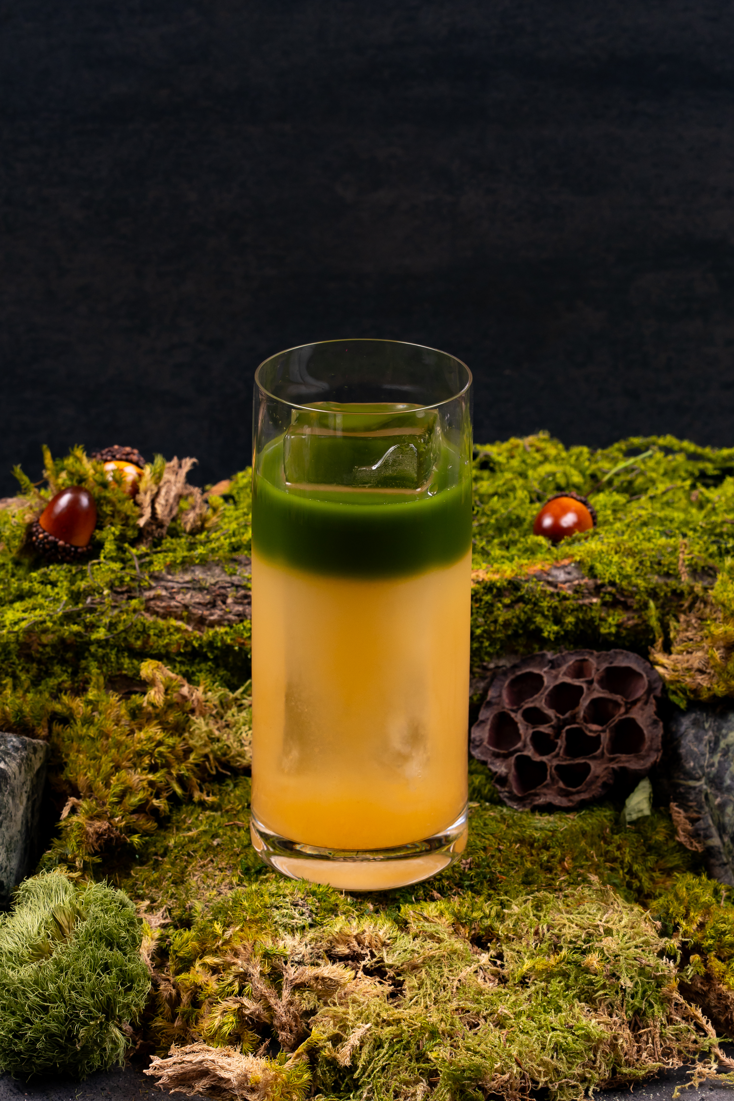 Лимонная водка, сок айвы, грушевый сироп, матча