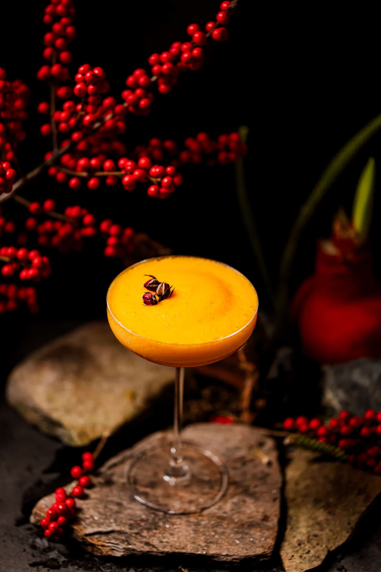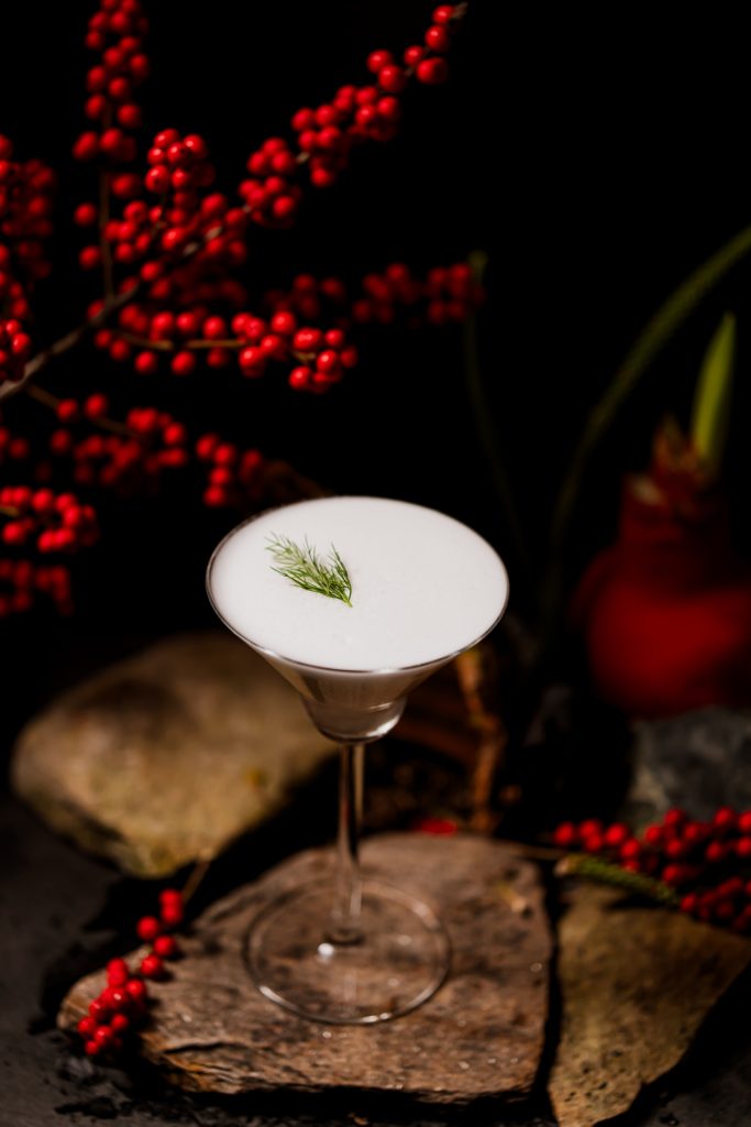 Айвовая водка, сухой вермут, кордиал из груши с юдзу, облепихово-айвовая пена