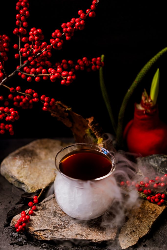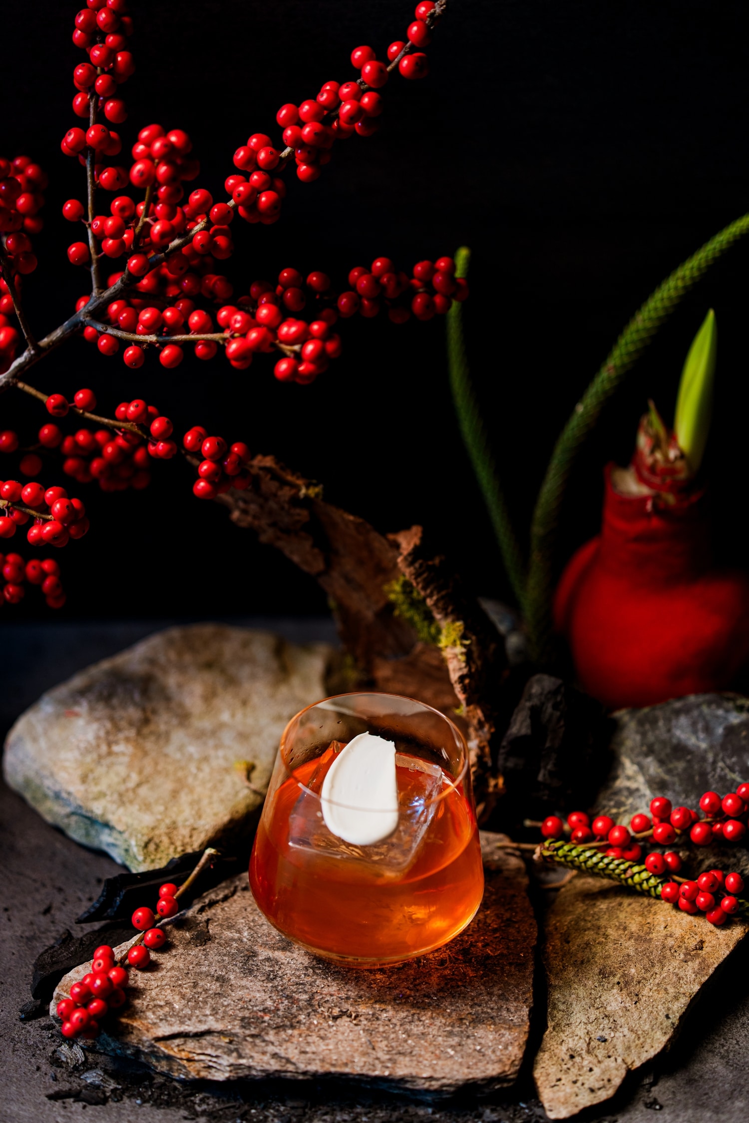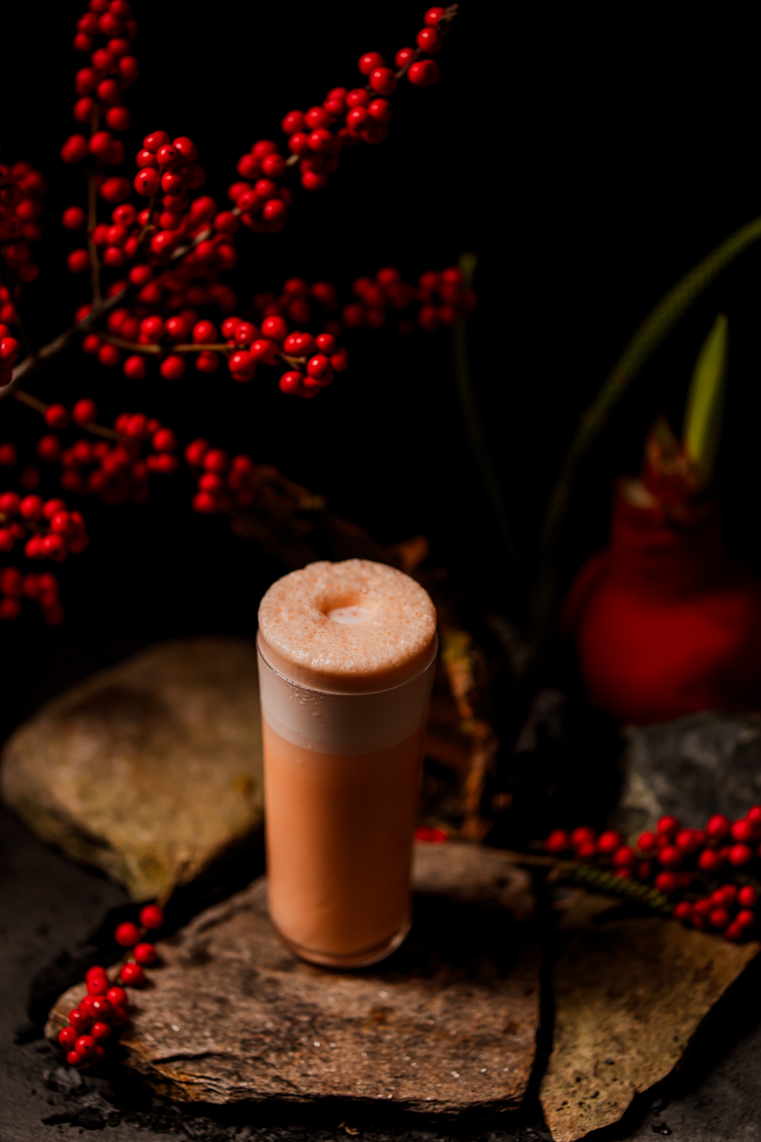Бренди с ройбушем, амаро, кордиал из орехов макадамия, бананово-макадамиевая пена