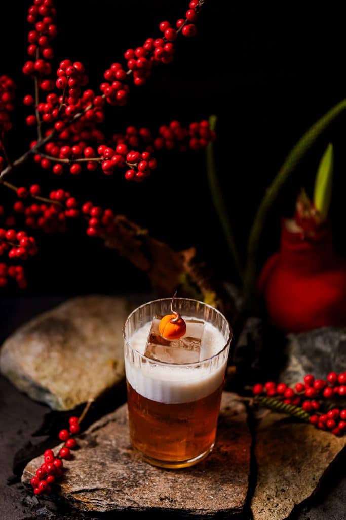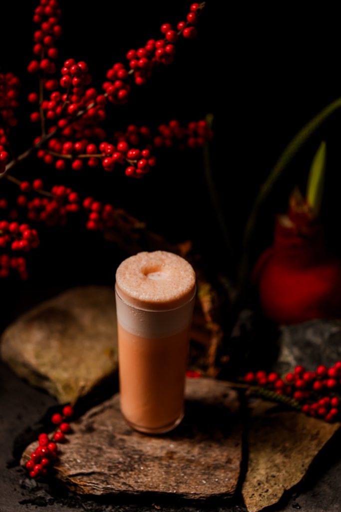 Pisco, Liqueur Apricot, Syrup Cinnamon, Fresh Lemon, Eggs