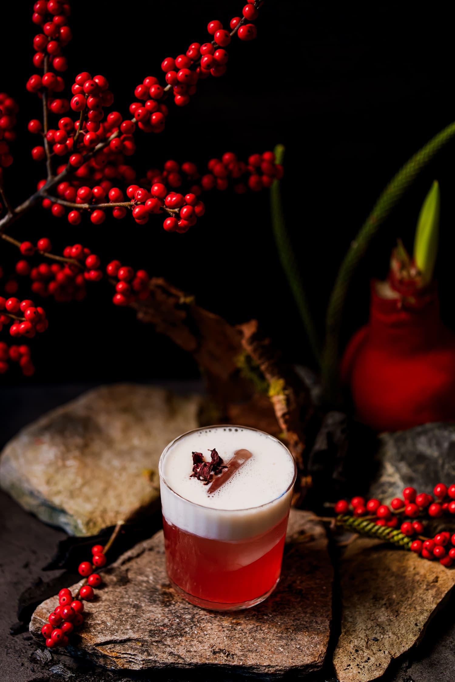 Джин с чёрной смородиной, смородиновый ликёр HM, ликёр амаро, кордиал на шоколаде с квасом